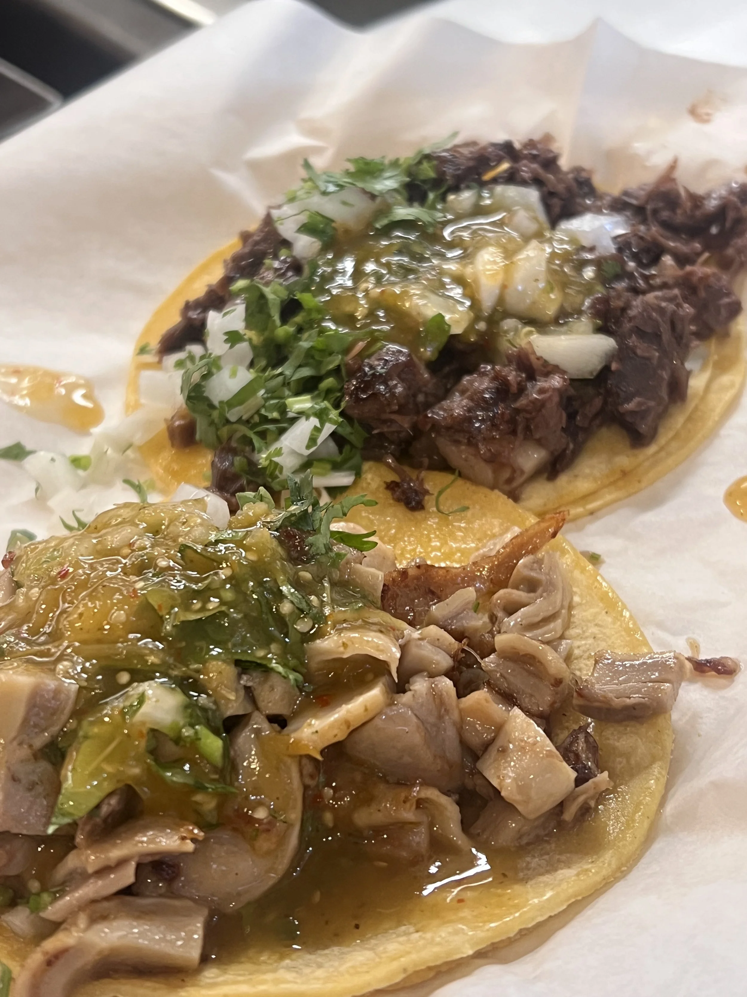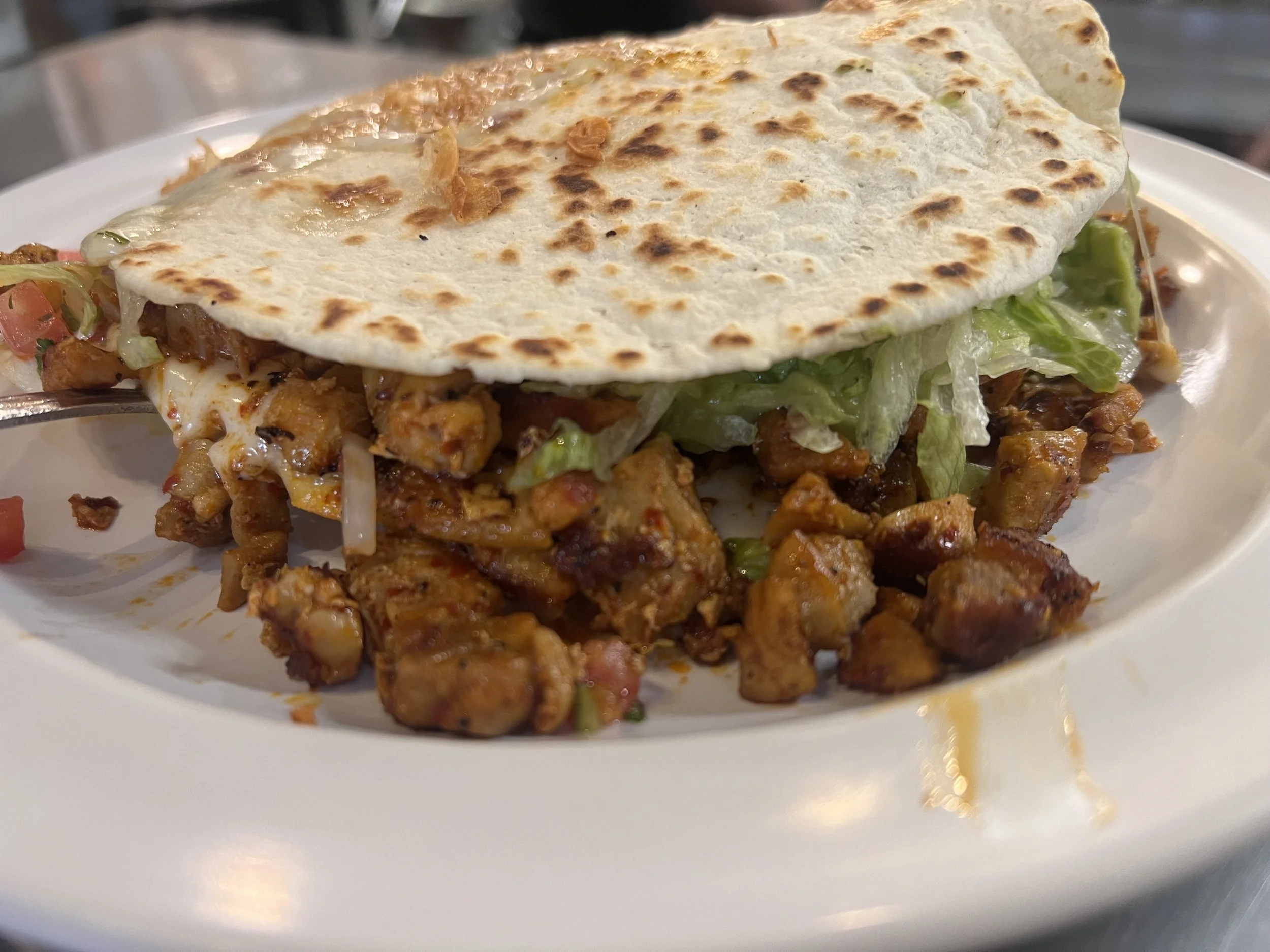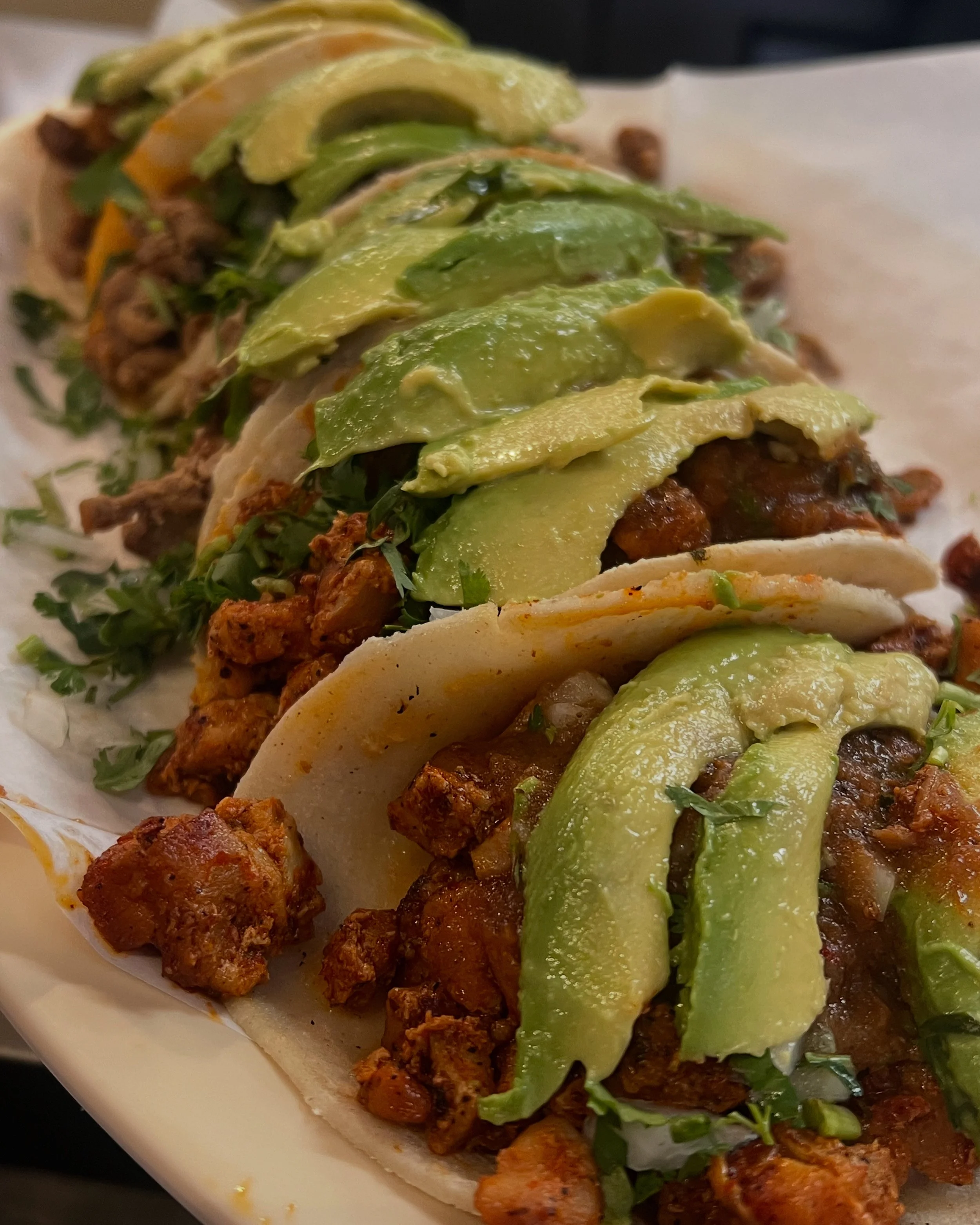 GRILLED CHICKEN TACOS TOPPED WITH AVOCADO